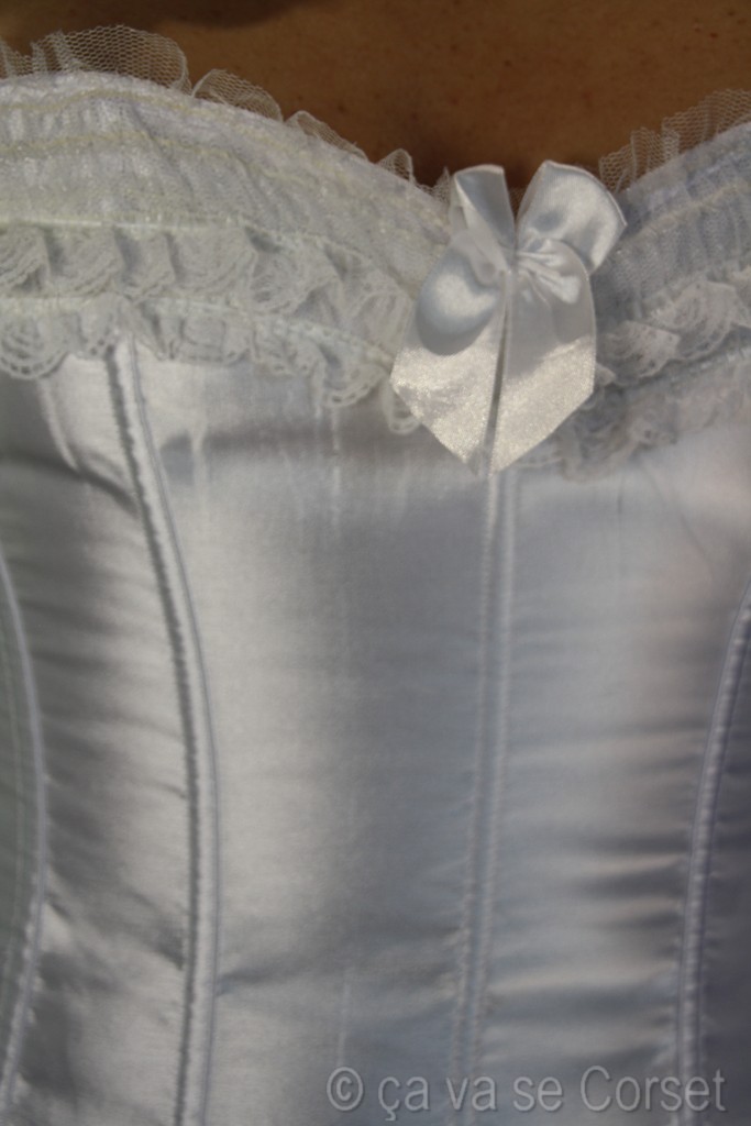 Magnifique ornement en dentelle travaillée et ses petits noeuds apportant une note sensuelle.