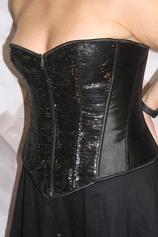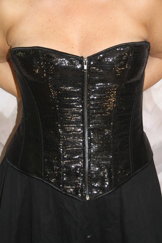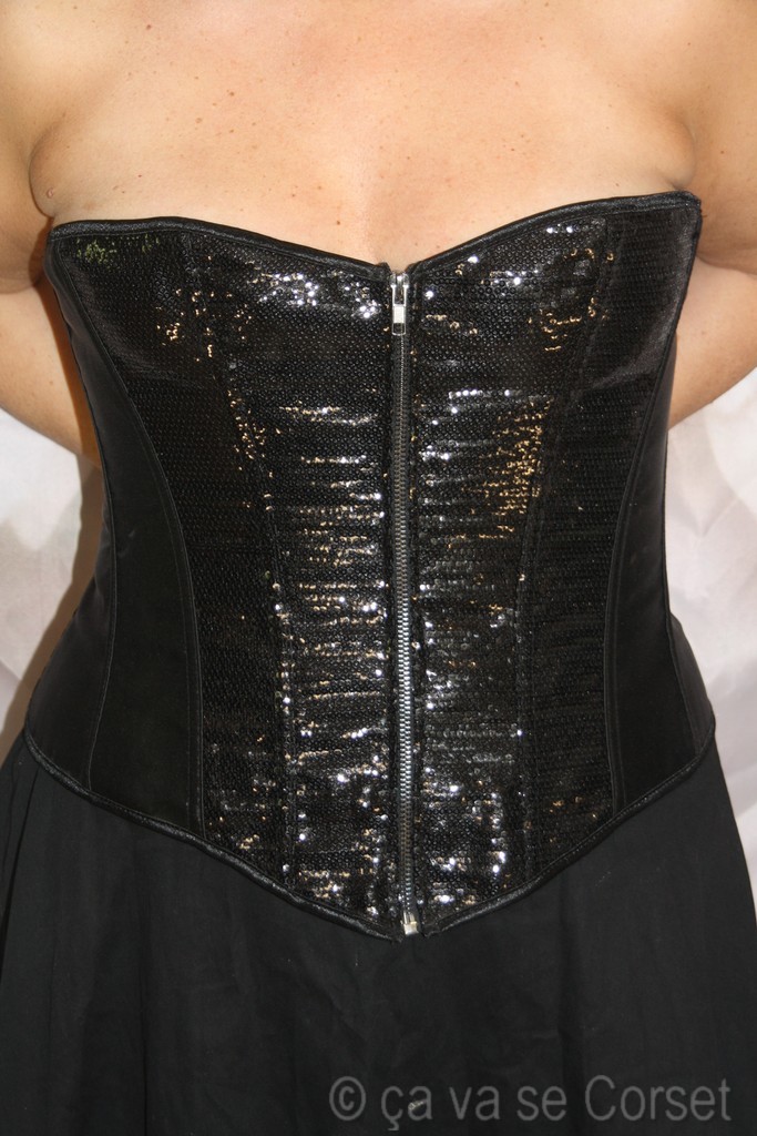 Ravissant corset associant le satin et le côté paillette qui illuminera la pièce lorsque les projecteurs seront sur vous.