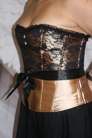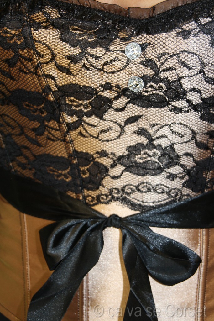 Raffinement au rendez-vous avec ce corset associant dentelle et satin.