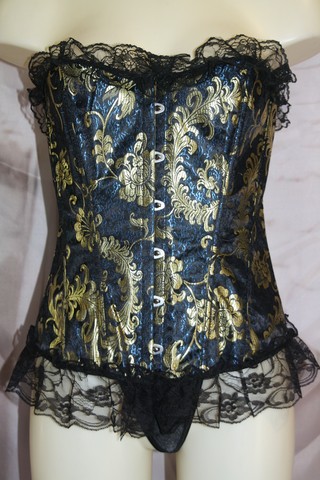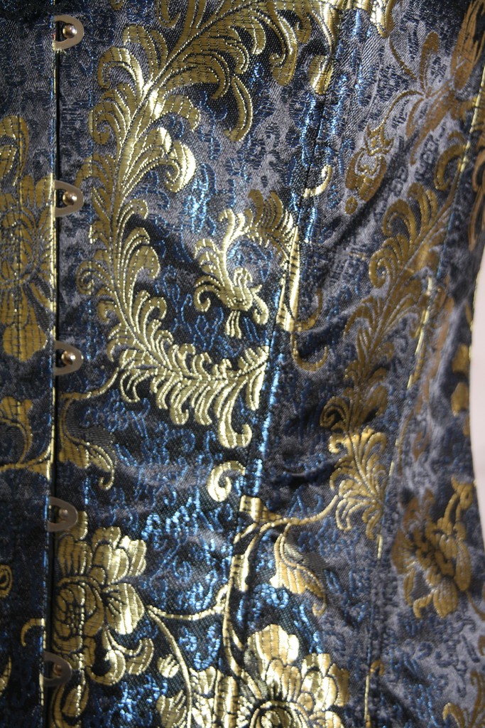 Magnifique corset aux couleurs vives et dorées.