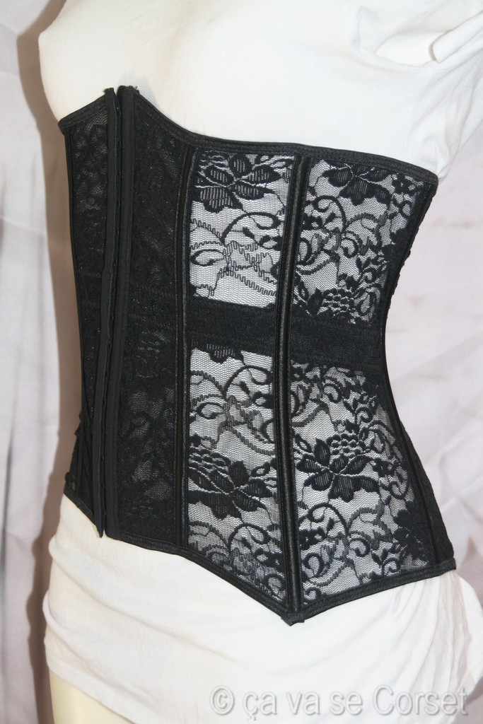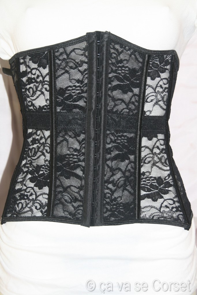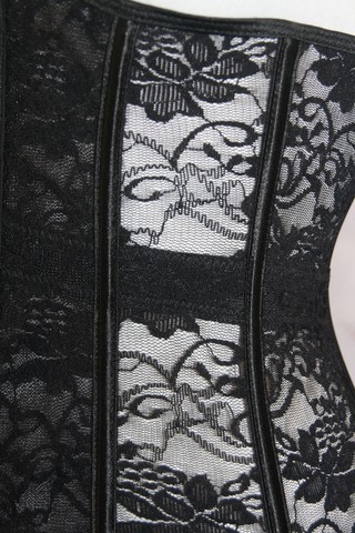 Serre-taille avec la particularité d'être en dentelle transparente assorti de motifs floraux.