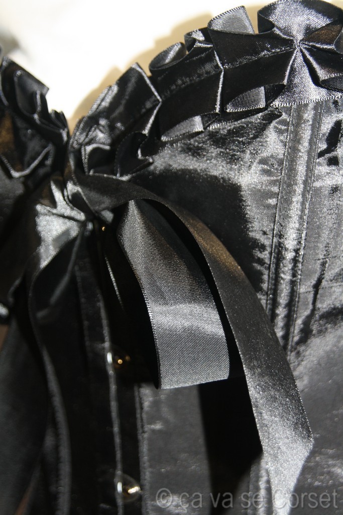 Très élégant avec ce noeud en satin et ces ornements plissés.