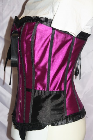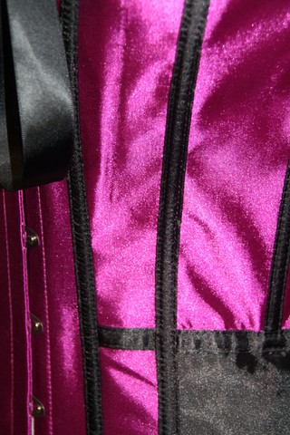 Merveilleux corset satiné avec ces belles couleurs et son noeud à concevoir.