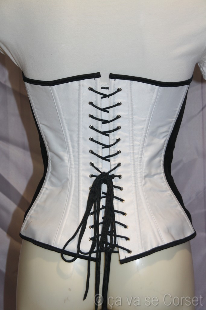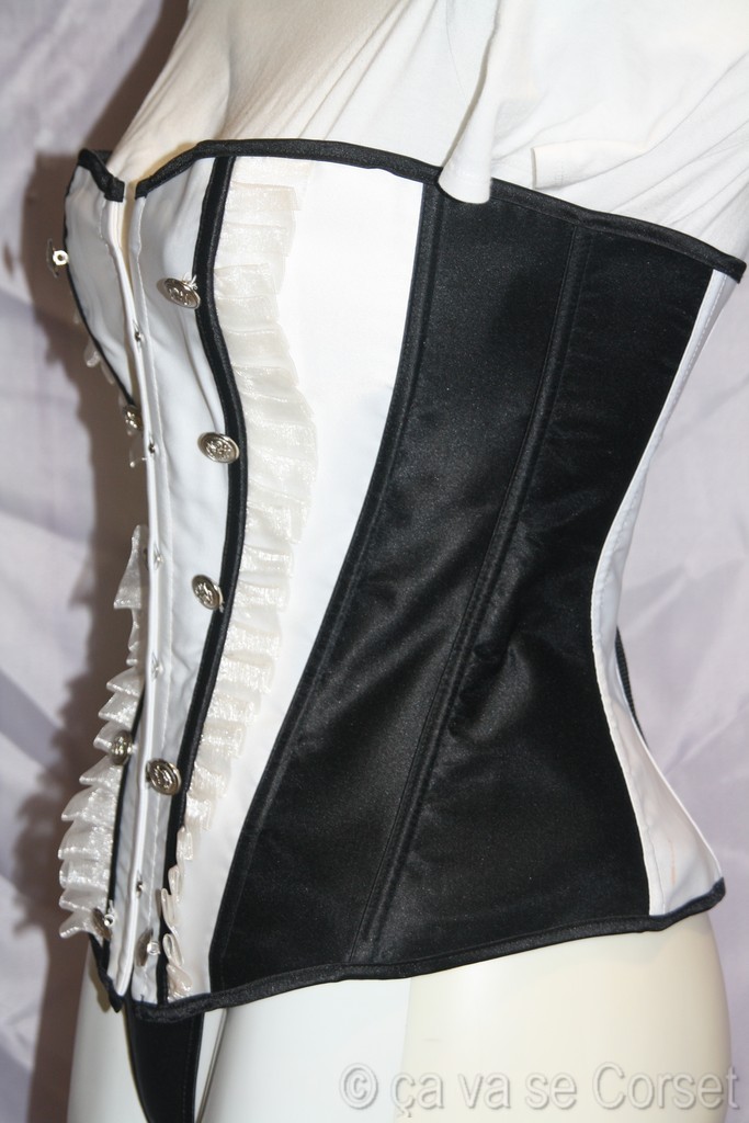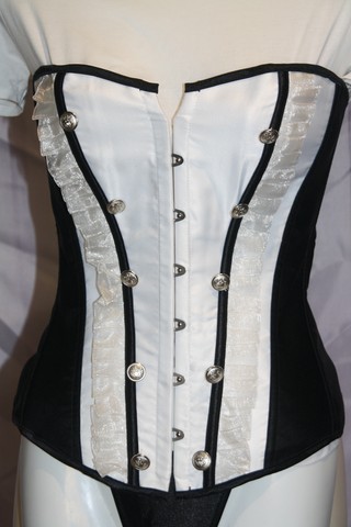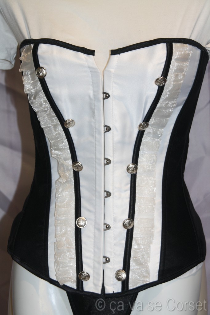 Corset satiné aux couleurs rappelant celles d'un maître d'hôtel.