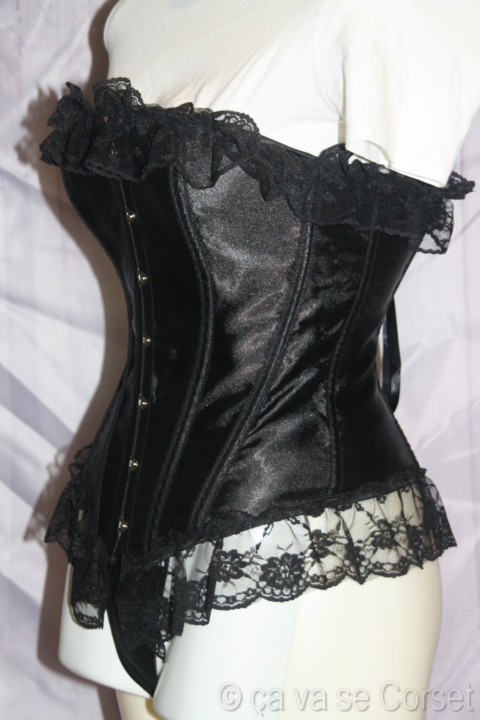 Corset satiné d'un noir profond.