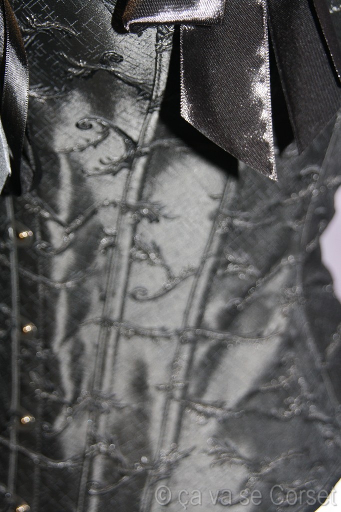 Subtils motifs brodés bien mis en valeur par un relief présent.