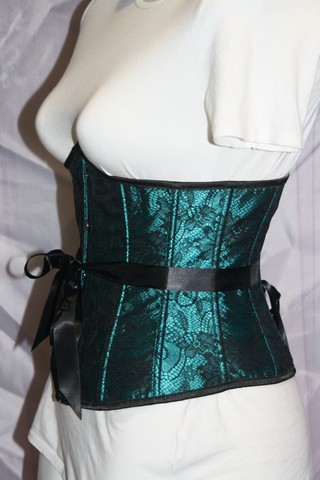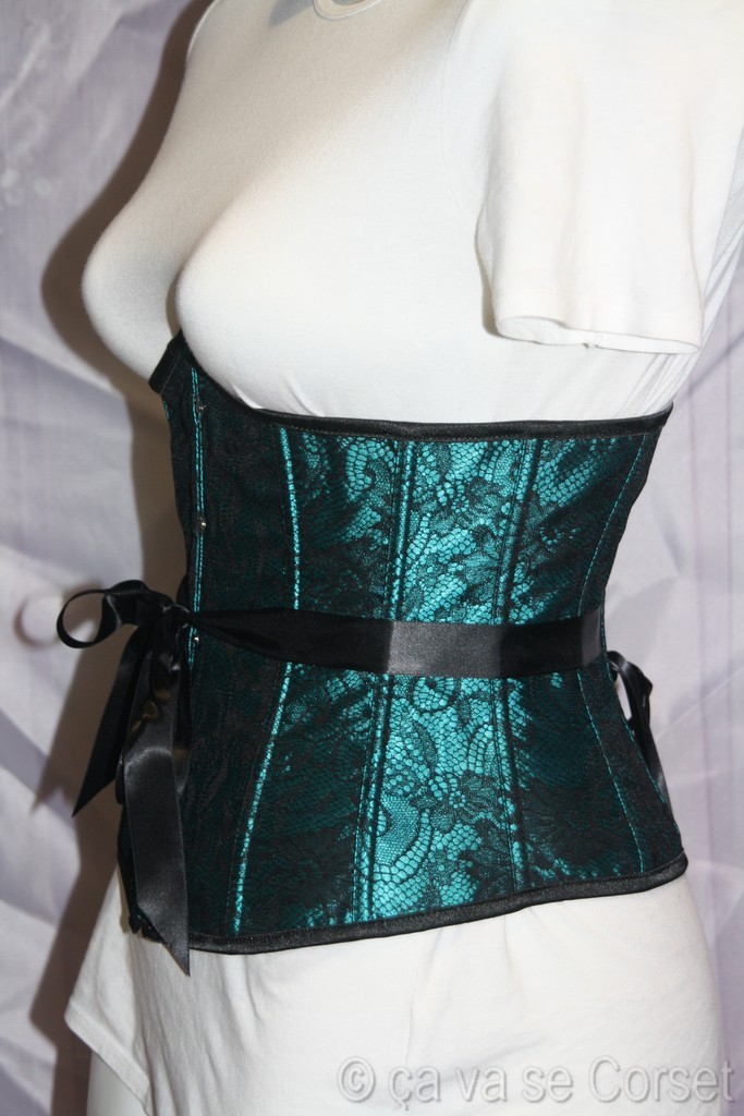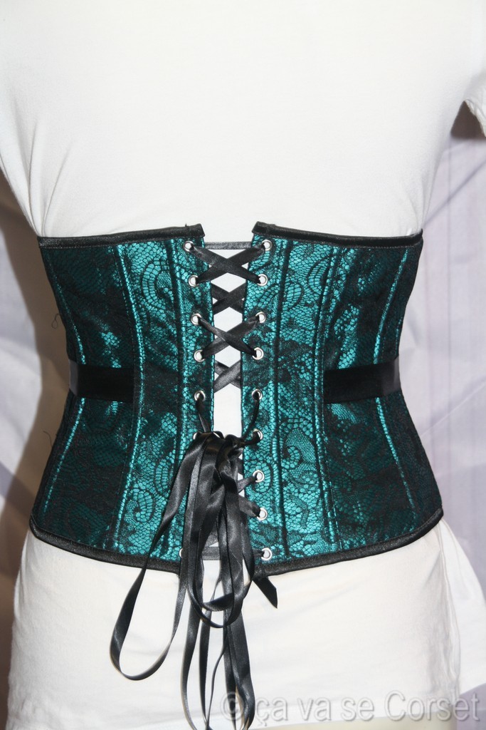 Serre-taille raffiné avec fine dentelle légèrement brodée.
