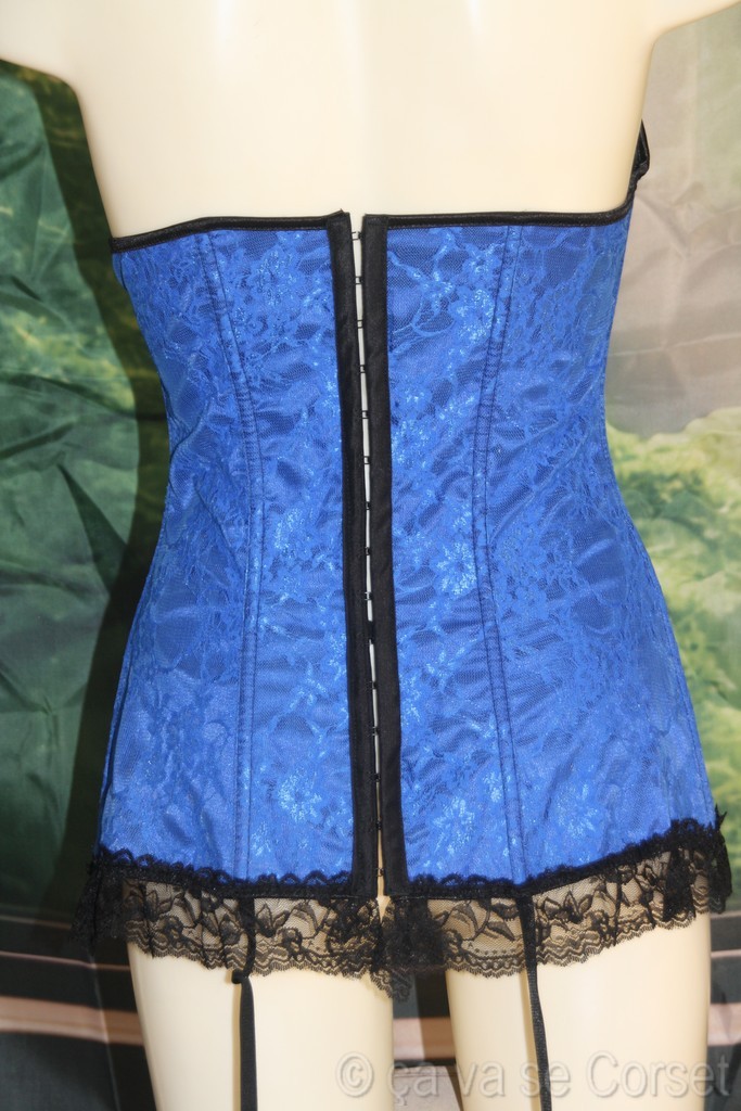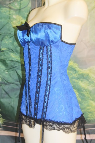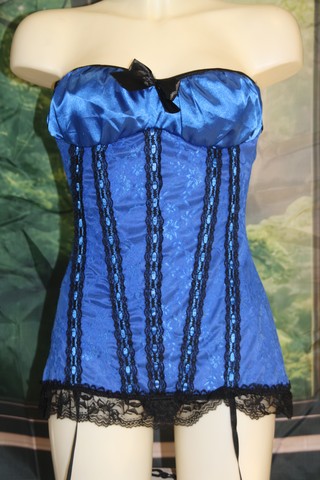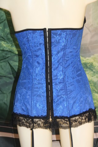 Bustier long aux lignes extravagantes offrant une échancrure particulière de la poitrine.