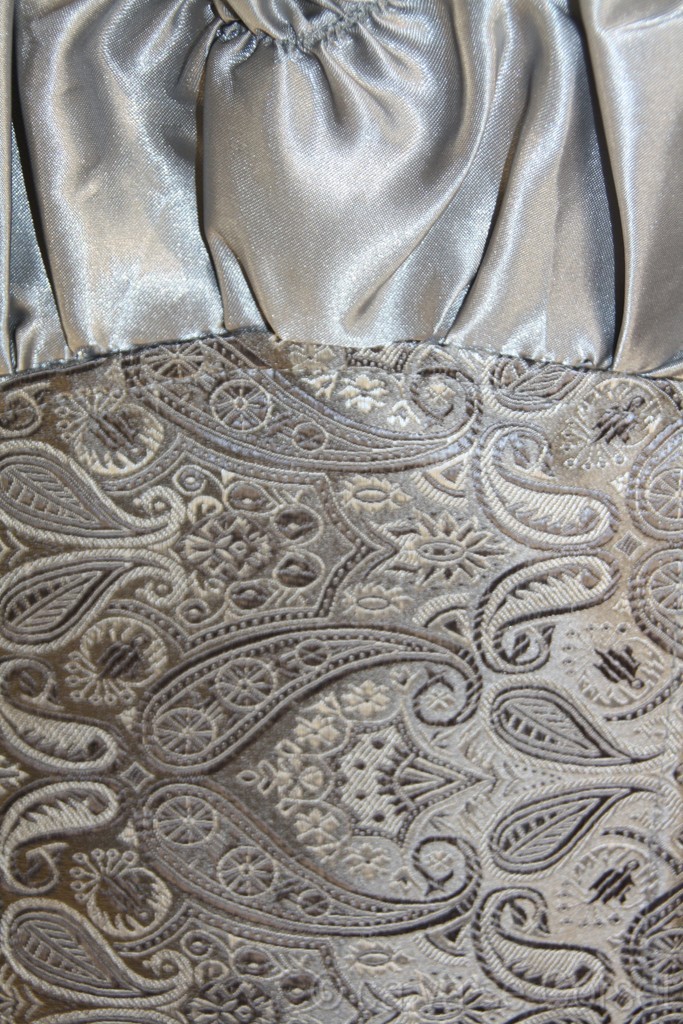 Alliance du satin neutre et de motifs imprimés, il associe le luxe et la simplicité.