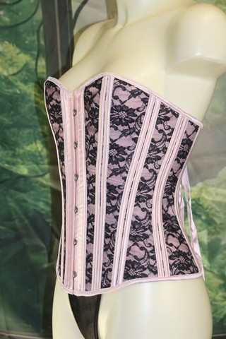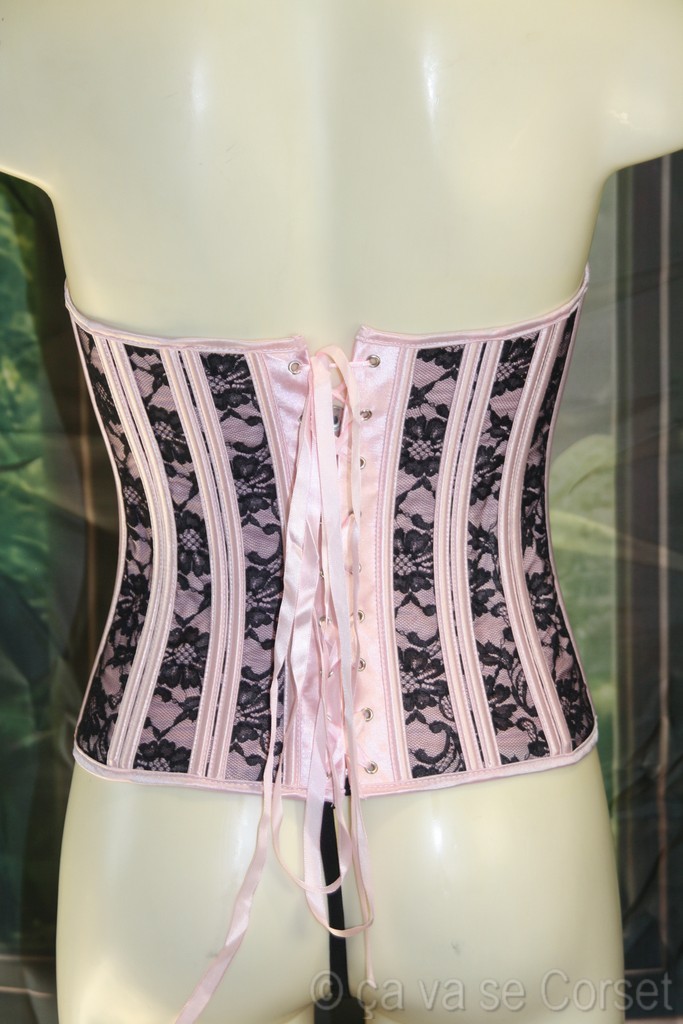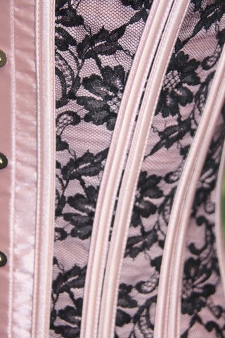 Beaucoup de raffinement dans ce corset alliant le satin et la dentelle brodée arborant des motifs floraux.