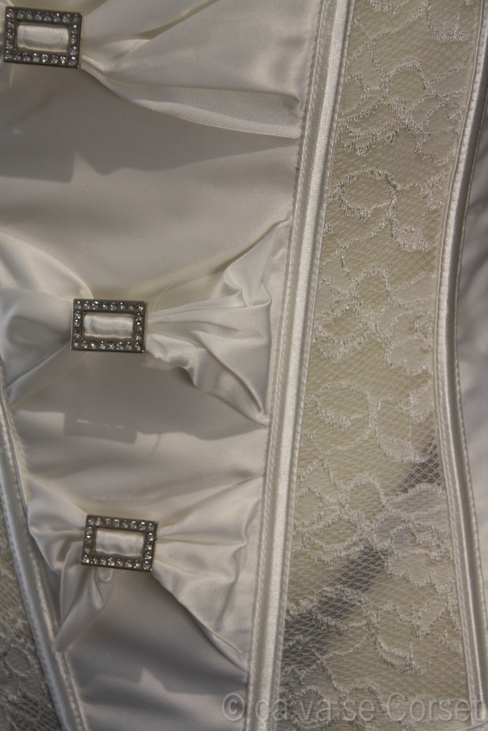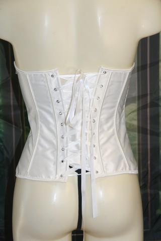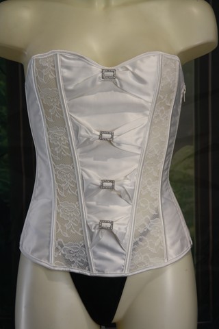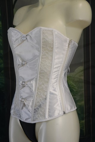 Corset satiné et dentelle blanche transparente laissant découvrir votre peau.