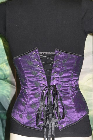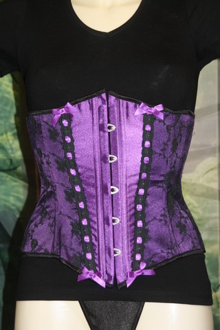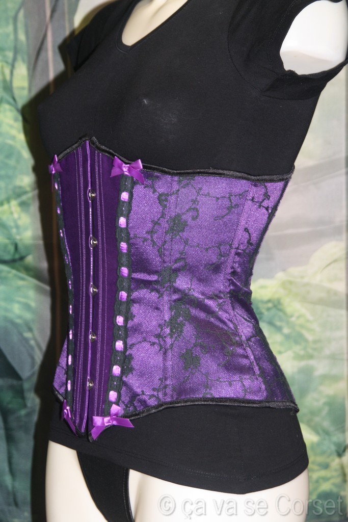 Serre-taille relativement long associant satin et fine dentelle légèrement brodée.