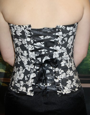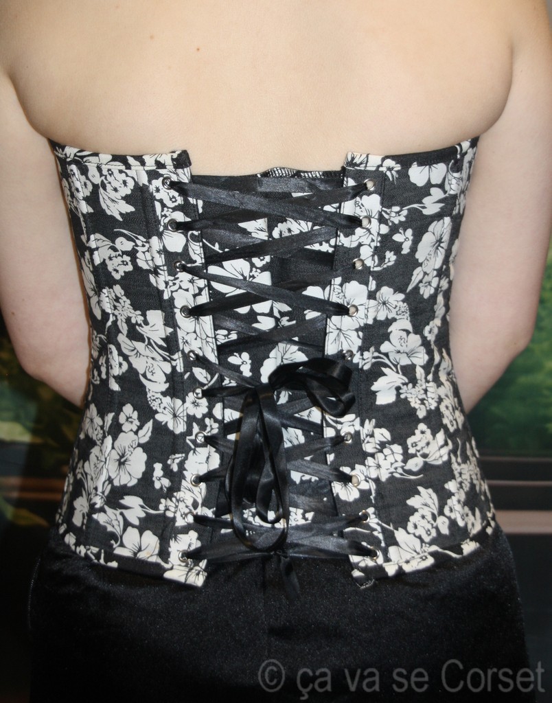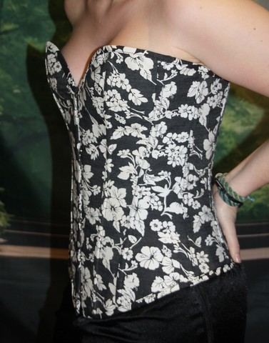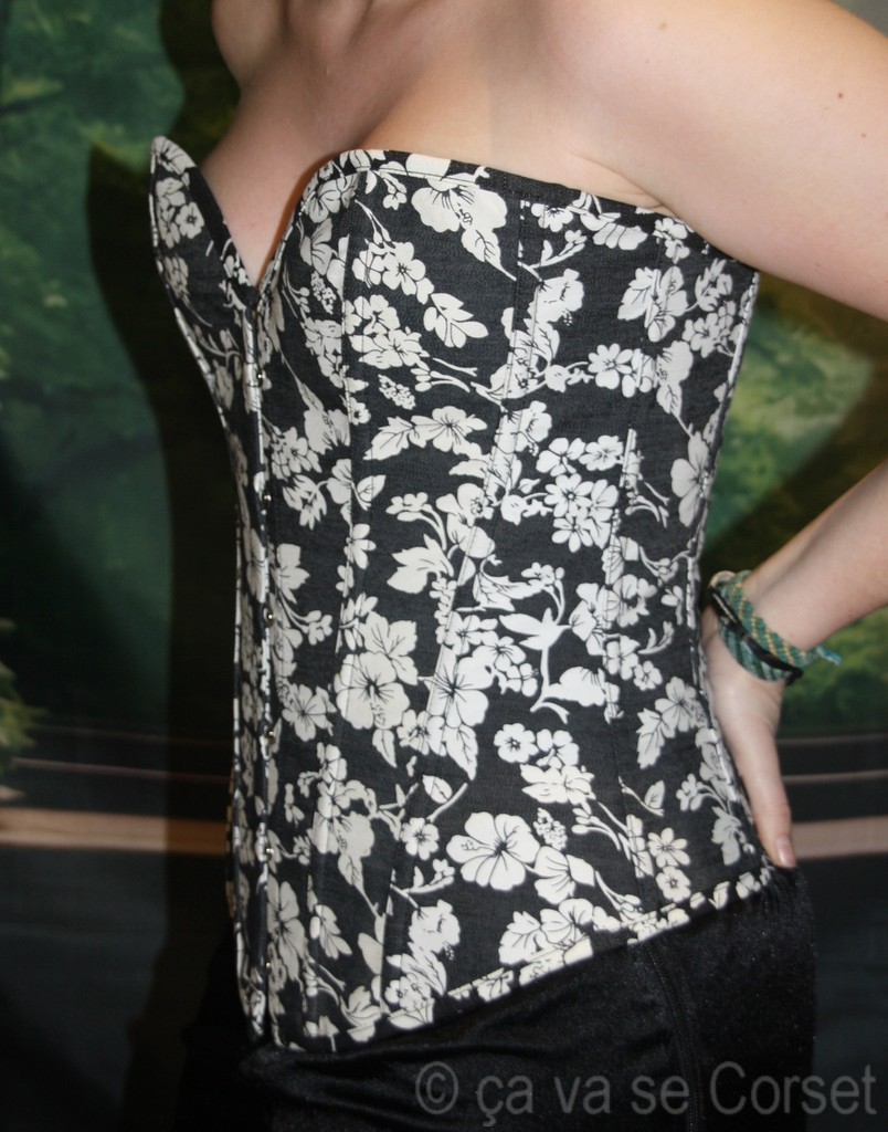 Corset en toile de jeans épais avec motifs floraux offrant un merveilleux décolleté.