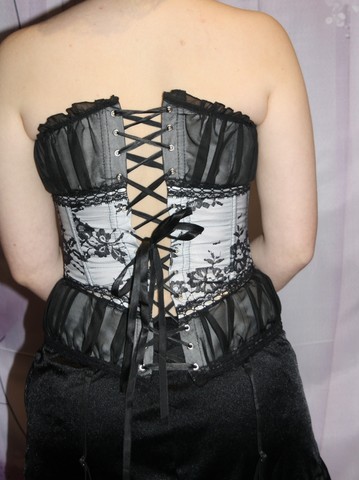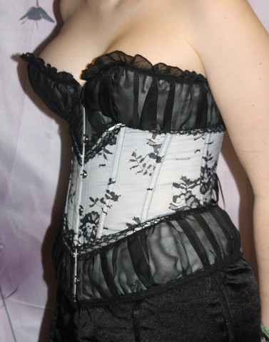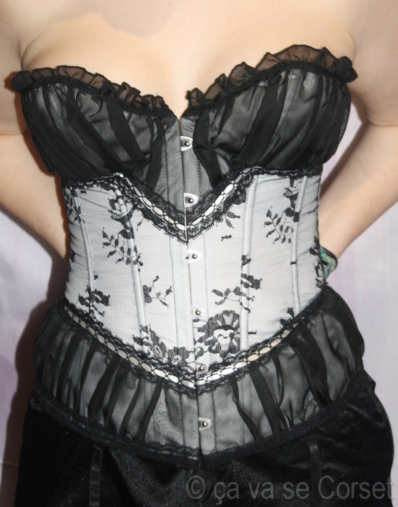 Modèle style victorien blanc et dentelle noire avec belle mise en valeur de votre poitrine.
