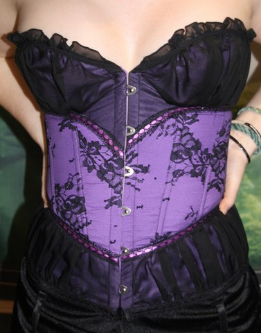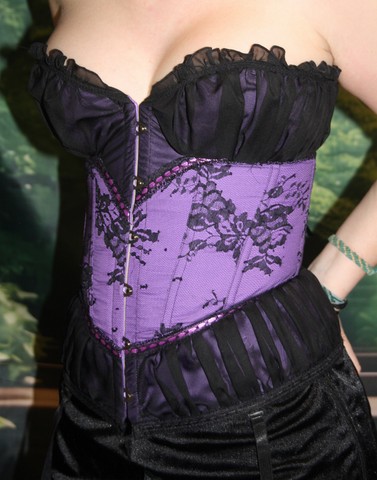 Modèle style victorien bleu et dentelle noire avec belle mise en valeur de votre poitrine.