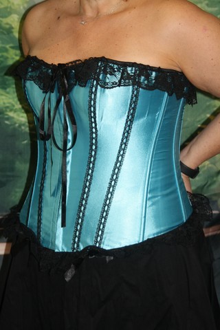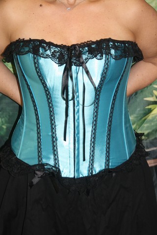 Corset satiné avec ravissante dentelle ornant le modèle.