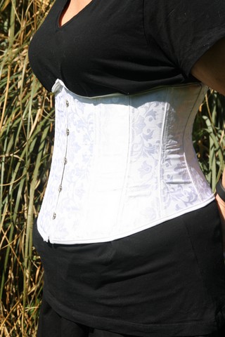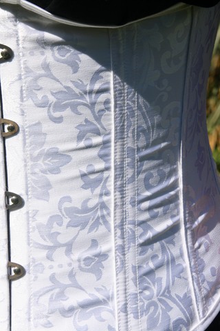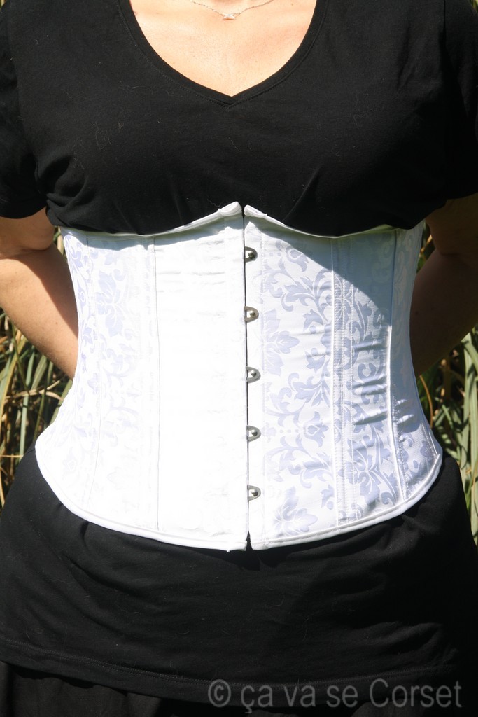 Serre-taille tissu blanc avec motifs ton sur ton.