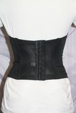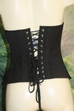 - le corset : se caractérise par son attache dorsale en corsetage, c'est à dire avec laçage. Ces lacets peuvent être en différentes matières. Pour la région ventrale, il existe plusieurs types d'attaches : busc, agrafes, zip ou parfois lacets.