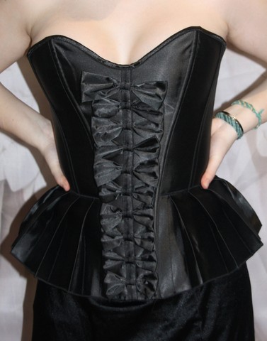 Corset tissu souple noir avec noeud et effet 'jupette'.